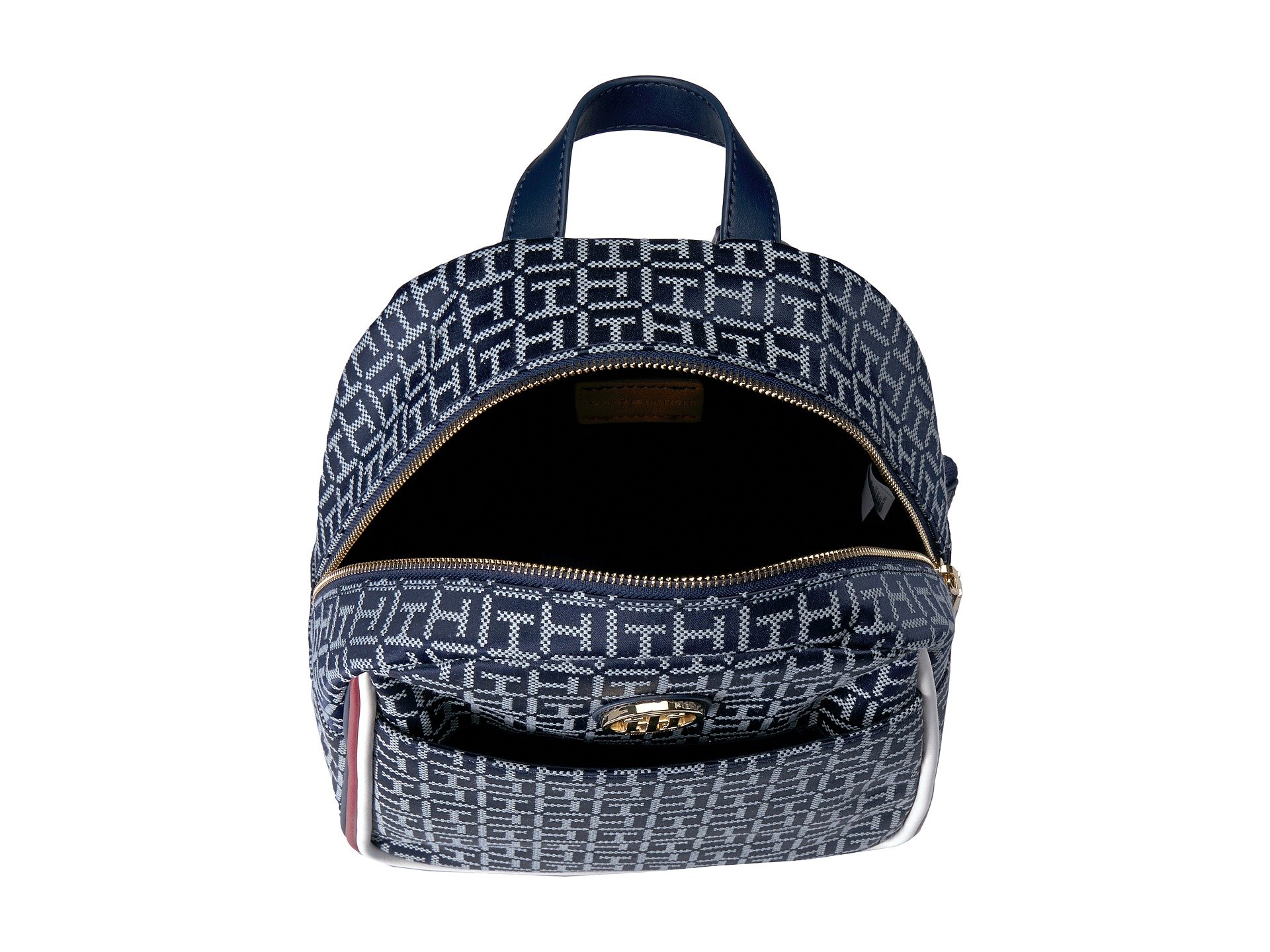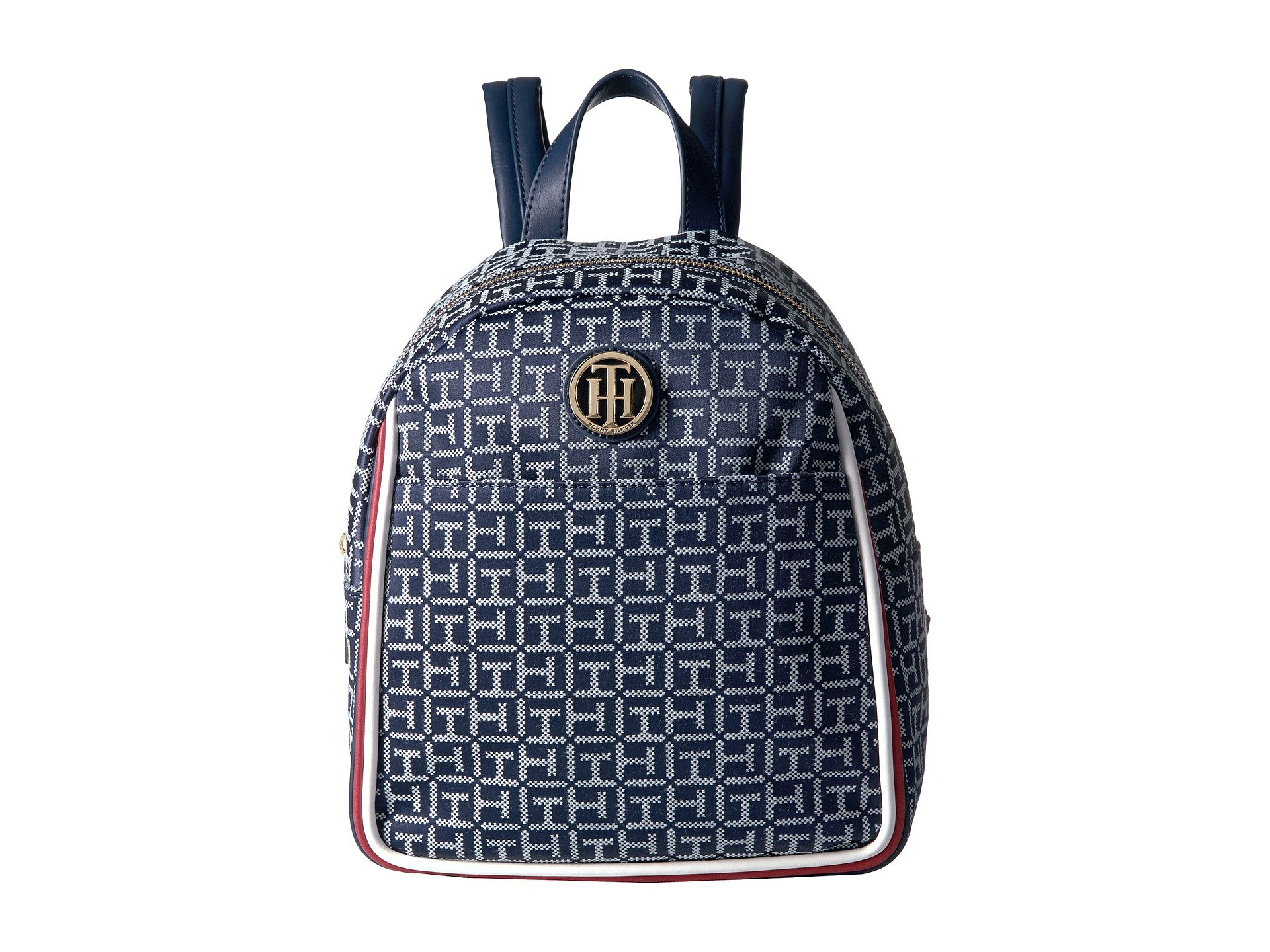| Product Information SKU: #8929187Make your backpack a fashion statement with this must-have Tommy Hilfiger? Alice Backpack.Durable man-made construction with allover brand logo printing.Top grab handles and adjustable shoulder straps.Exterior features a large slip pocket with magnetic snap closure.Zippered main compartment closure.Interior includes a slip pocket perfect for your accessories.Imported.This product may have a manufacturer's warranty. Please visit the manufacturer's website or contact us at warranty@support.zappos.com for full manufacturer warranty details.Measurements: Bottom Width: 9 1?4 in Depth: 5 in Height: 11 in Strap Length: 29 in Strap Drop: 18 in Handle Length: 7 1?4 in Handle Drop: 2 3?4 in Weight: 1 lb 2 oz |