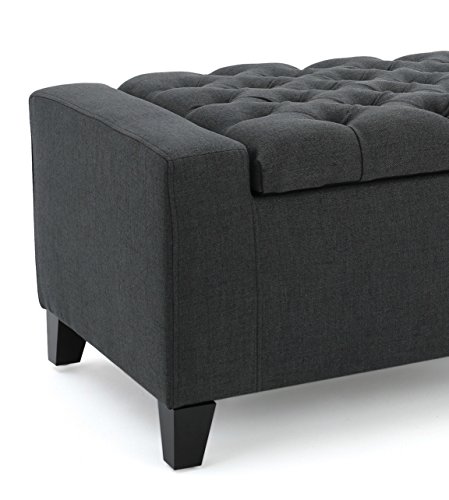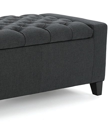 -. Feature : This stylish storage ottoman bench will look good against any wall or window, and will hold all of those items you do not really want to put too far away, but you also do not want to always look at as they clutter your coffee table. / Store extra remotes, toys, board games and other small items in this beautiful storage ottoman bench. / With its tufted top, this ottoman also becomes the perfect foot rest or seat for the foot of your bed. / Add a serving tray and you will have a coffee table. Place it at the bed end and store your bed sheets in it. Or place it near the large window, sit down and relax watching the views and drinking your favorite hot tea. / Materials: Fabric, wood; Dimensions: 17.5 inches high x 50 inches wide x 20 inches deep