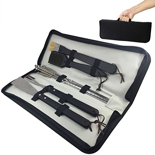 -. Feature : HIGHT QUALITY GRILL SET - Thick, solid, and extremely durable, the BBQ Set is constructed from high-quality stainless steel and set in robust wooden handles. Each set includes a Spatula, Meat Fork, Cleaning Brush, Grill Brush and 6 Skewers that are sturdy enough to grill up a storm without the worry of bending or breaking. / USES - The barbecue tool set is an ideal for a variety of uses, from indoor cookin' to outdoor cookout parties, tailgating, or camping. The compact carrying case makes this BBQ grill set a great gift option for birthdays, anniversaries, or father's day, giving a lucky grilling enthusiast a quality BBQ set. / HUMANIZED DESIGN: The BBQ grill tool set has hanging hooks, it's convenient and easy to storage around your grill or kitchen. You can easily take it anywhere with the oxford bag. / A GREAT GIFT: This is the perfect Father's Day gift, or birthday present for your boyfriend, dad or husband. This BBQ kit has everything you need for a perfect holiday-time barbecue. / LIFETIME GUARANTEE---Any quality problem(Non-artificial damage) please feel free to contact us, we will reply you within 24 hours.
