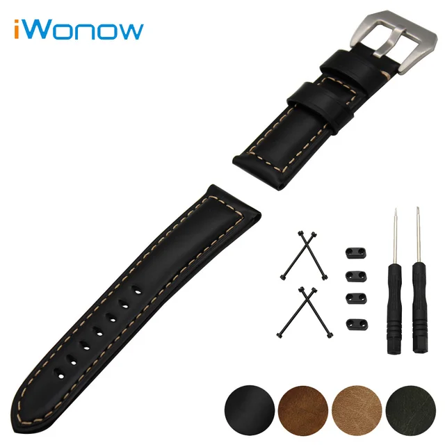 | [해외] 정품 가죽 시계 밴드 24 미리메터 대한 suunto 코어 스테인레스 스틸 탕 버클 스트랩 손목 벨트 팔찌 블랙 + 러그 어댑터 + 도구 |