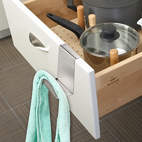 - • NO MOUNTING HARDWARE REQUIRED: These stainless steel towel hooks are very easy to install. They do not need any special knowledge or mounting hardware. Simply hang over your door and you are good to go. Need to move it? No problem. Remove it and take it to your new location.