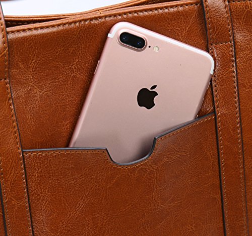 Large capacity. Contain 2 roomy main pockets for your IPAD, 11’ laptop, wallet, A4 file, make ups and other daily things. 1 inner zipper pocket and 1 invisible zipper pocket inside maximum security for valuables is guaranteed. 1 Rear zipper pocket for your change and coin, easy taking things with or out.