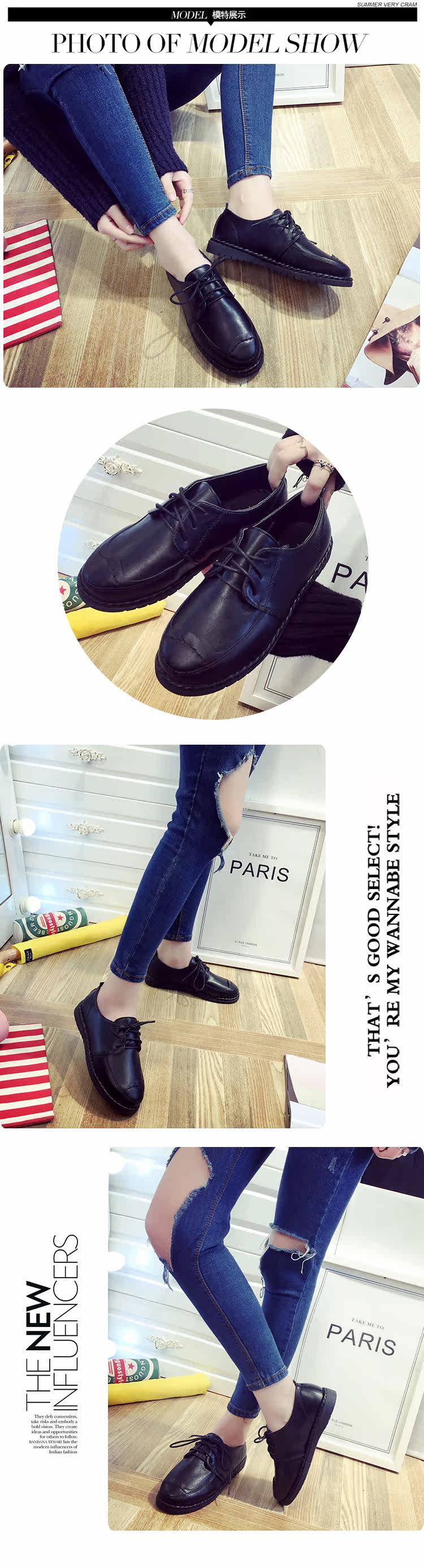春季小白鞋平底板鞋百搭休闲鞋女鞋英伦风白色学生系带单鞋小皮鞋