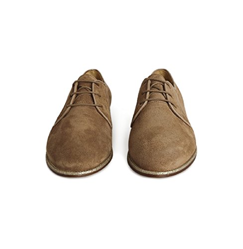 Studio : Bobbies Publisher : Bobbies Binding : Apparel Product Description Antilope coloured suede derbies, Italian sourced leather, golden glitter trim, front 3-eyelet lace up closure, calfskin leather lining, rubber sole, 2cm heel height, top stitching. Add a touch of glamour to even the most serious of outfits with these luxury suede derbies with golden glitter trim. Sourced from the heart of Italy, these Shiny suede derbies are a timeless classic for any occasion. Style this season with a midi skirt, blouse and biker jacket for a hardworking look we know you'll love. 0