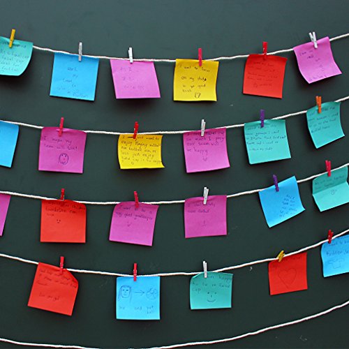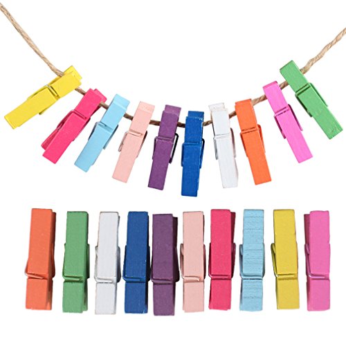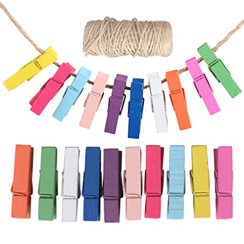 Hapdoo 120 Pack Colored Wooden Clothespins Clothes Pegs with Spring - Mini Photo Clips Paper Pegs Craft Pin with 132 Feet Jute Twine
