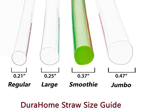 Studio : DuraHome Publisher : DuraHome Product Description Add a pop of color to your day. Enjoy your thick drinks with these colorful smoothie straws!! They have a wide opening 9.5mm (0.37") and are 8.25" long. The straws are designed to easily slurp smoothies, slushies, milkshakes, slurpees, chunky green juices and other thick drinks. Great for arts crafts and as dowel rods for multi-level cakes. Bright vibrant colors will make your drink seem like a treat! These plastic smoothie straws come in a convenient resealable bag. Great for any birthday party, barbecue, summer gathering and everyday use. Kids love them! DuraHome straws are made of FDA-approved recyclable material. Food safe BPA-free. 0