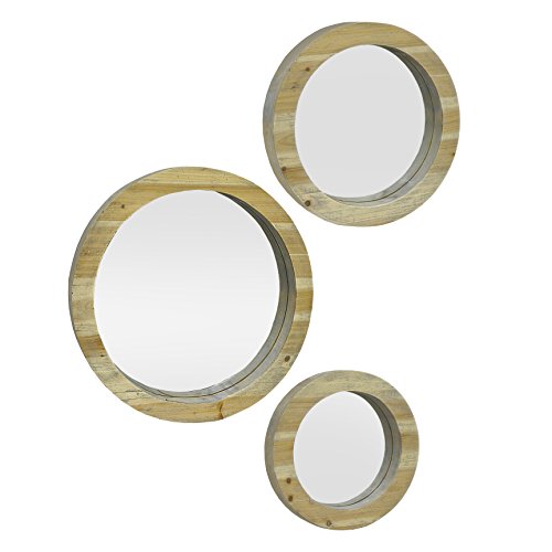 Three Hands Corporation 82372 Circular Wood Wall Mirror Set, Brown