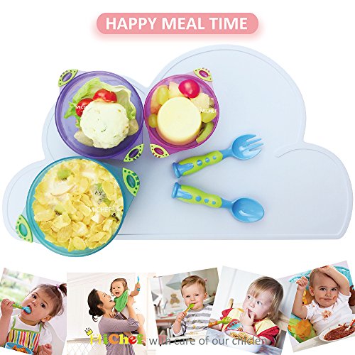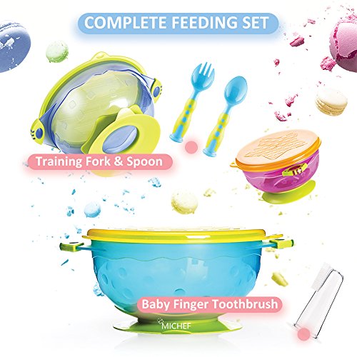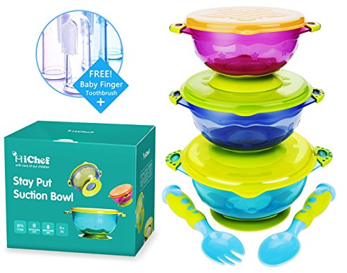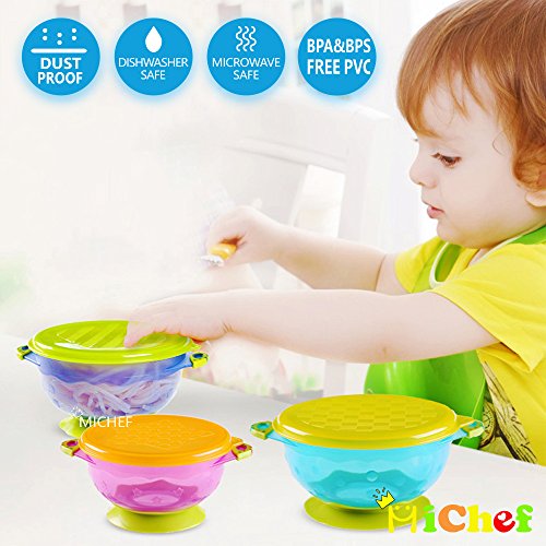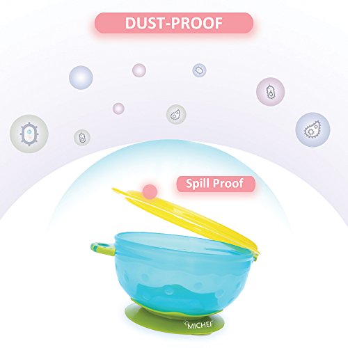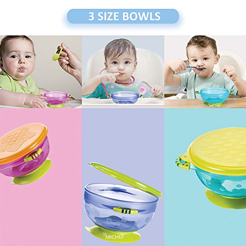 MiChef Stay Put Suction Bowl, Spill Proof, Baby Bowls with Snap Tight Lids, Baby Gift Set of 3 Count, and 2 Best Baby Spoon and Fork, Perfect for Babies &...