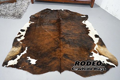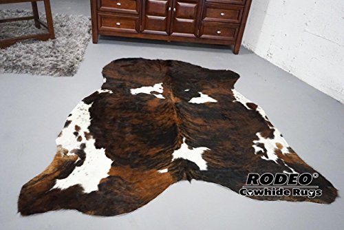 BUY from Rodeohides, you always get more! Every cowhides rug we carry is of the highest quality! Cow Hides Are Not All Tanned the Same A properly tanned cowhide rug should last for the rest of our lives, never cracking or shedding in all this time. Unfortunately, many people do not know the difference between the various tanning processes that cowhides go through, and simply assume that all cow hide rugs are the same... they mistakenly think that a cowhide rug is a cow hide rug. Nothing could be further from the truth! As a result, people too often end up purchasing a low priced cow hide rug that cracks or sheds in just a few short years. Our cow hide rugs will never do that! Our Cowhide Rugs Are All Handpicked We go down to the tannery every week and hand pick each one of our cowhide rugs. We choose each cow hide based on quality, size and color. This might not sound important but we know of no other cow hide rug producer who handpicks each and every cowhide rug that they sell. It takes 72 days to process one of our hides. They are chromium tanned so that pets and insects HATE the taste of them. It melds with the hair so they will NEVER shed! They have finished suede leather backs so they will never damage any surfaces. They will last 25-30 years, even with heavy traffic! You can spill RED WINE on it and it will wipe off easily, NOTHING can stain it! The most "low maintenance" rug you will ever own! Use them as a rug, a wall hanging, draped over a couch, draped over a railing, as a table cloth or even as a decorative piece for on top of the bed!Feature