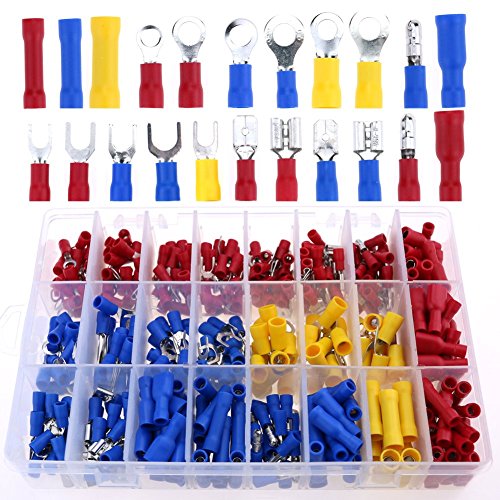- Package includes: fork spade ring butt bullet quick disconnect insulated crimp terminals connectors