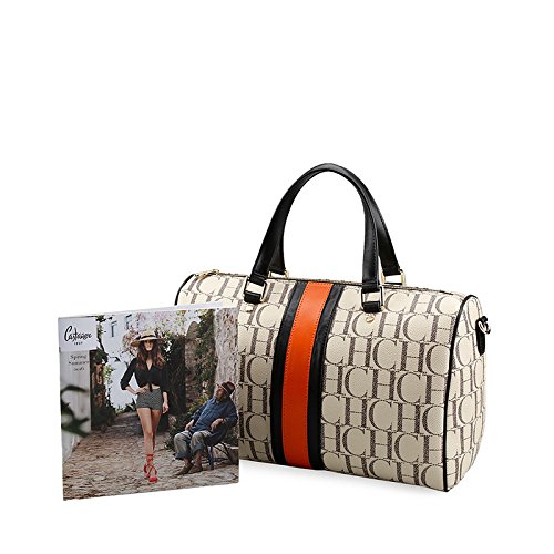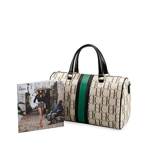 -. Brand : JOLLYCHIC -. Department : womens -. Feature : Measures Approximately Small: 9.3" x 5.4" x 6.1", Large: 13.6" x 8.5" x 6.3" / 100% Genuine Leather / Exterior 1 Back Zipper Pocket,Polyester Lined Interior with Zippered Pocket and 2 Open Slip Pockets / Comes with A Removable Long Crossbody Strap Drops about 47" / Striped CHCH Signature Boston Bag Style,Top Zipper Closure,Durable Soft Top Handle -. PackageQuantity : 1 -. ProductGroup : Shoes -. ProductTypeName : HANDBAG -. Title : JOLLYCHIC CHCH Signature Center Stripe Leather Top Handle Bag Shoulder Bag
