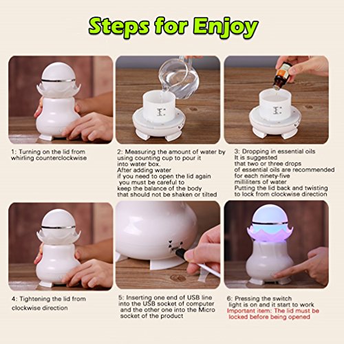 - >>3. Lifeful and sweet surrounding: The essential oil diffuser humidifier could improve air quality of your home and office, non-heat ultrasonic technology can produce super weeny water drop and oxygen anion, weeny water drop can take away dust and bacteria, essential oil and anion will make air fresh and sweet, healthy and high-quality life, better sleep.