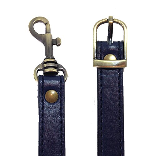 -. Feature : Dark navy blue, synthetic leather adjustable purse strap / Adjustable length 42″-48″ (including snap hooks) / Brass tone (gold tone), Antique Brass tone (antique gold tone) or Nickel tone (silver tone) hardware: snap hooks, rivets, buckle / Double-layer taping, cross-body length. Strap is 0.6″ (5/8") wide. / Handcrafted in Northern California, USA!