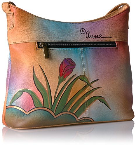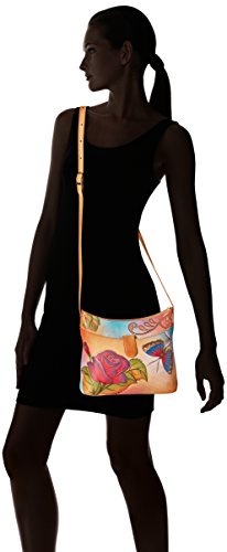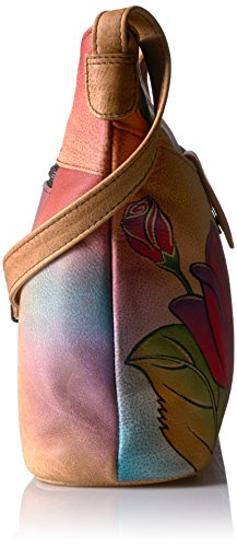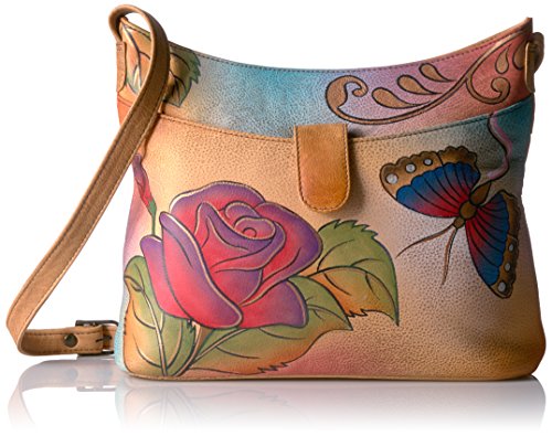 -. Title : Anuschka Anna by Handpainted Small Shoulder Bag-Rose Butterfly