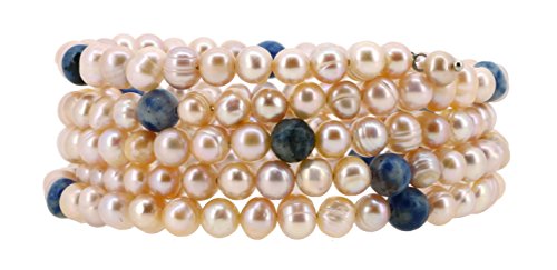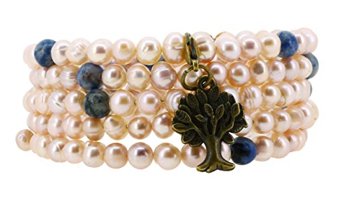 -. Feature : Long 5 Times Wrap Around Bracelet Kit, Made from Freshwater Cultured Pearls, Simulated Sodalite Accent Beads, and Metal Memory Wire; / Great and One of the Most Popular Graduation, Anniversary, Thank You, Birthday, Last Minute, Get Well, Mother's Day, or Christmas Gifts for Women, Ladies, and Girls; / Handmade Real Freshwater Cultured Pearl Wrapped Bracelet with a Charm Pendant; / Removable Alloy Charm: Tree of Life, Om, Peace, Lotus Flower, Fleur de Lis, Anchor, Elephant, or Mom; Free Velvet Mandala Crafts Gift Bag; / Cultured Pearl Size: 6 to 7mm; Luster: Medium; Shape: Potato; One Size Fits Most;