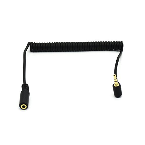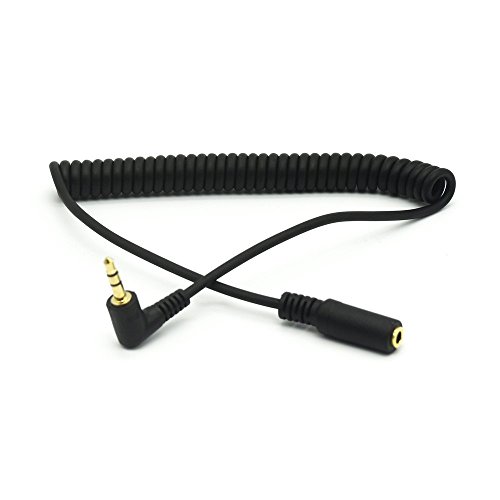 Coiled 3.5mm Jack Audio Cable - Riipoo 5 Feet 90 Degree Angle 3 Pole TRS 3.5mm Male to Female Stereo Jack Audio Extension Coiled Cable ( Golden Plated)