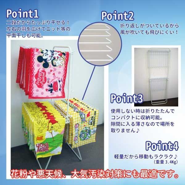 送料無料,折りたたみ,屋外,屋内,梅雨,部屋干し,室内干し,洗濯物,洗濯ハンガー,二段,コンパクト,ホワイト,白,花粉対策,PM2.5,黄砂,ランドリー,収納,生活雑貨,省スペース,軽量省スペースでタオルから長い衣類までたっぷり干せて