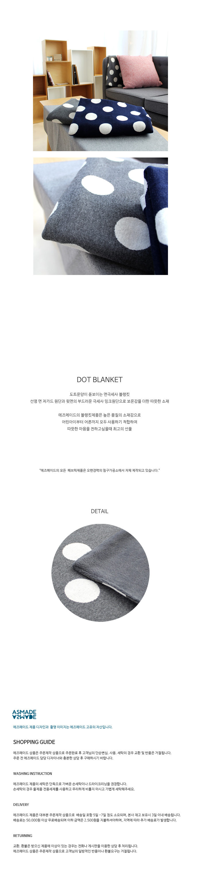 도트문양이 돋보이는 면극세사 블랭킷