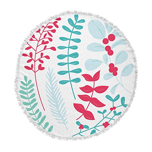 KESS InHouse Original Deck the Hollies Red Teal Round Beach Towel Blanket