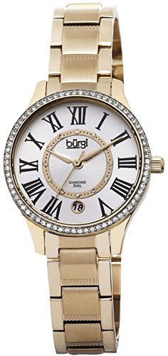 ReleaseDate : 2014-04-30 Studio : Burgi Publisher : Burgi Binding : Watch Product Description Add a fashionable accent to your outfit with this ladies Burgi watch. The textured dial features 12 diamond markers and bold Roman numerals. The stainless steel bezel is accented with a row of crystals that is sure to make it an eye-catching timepiece. 0