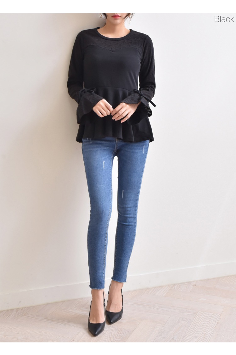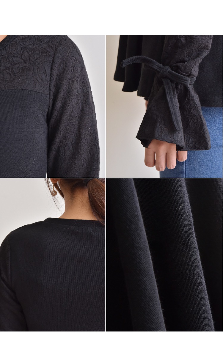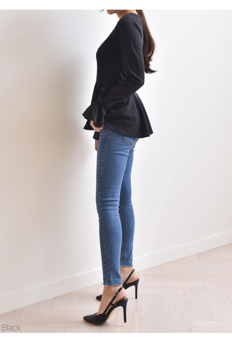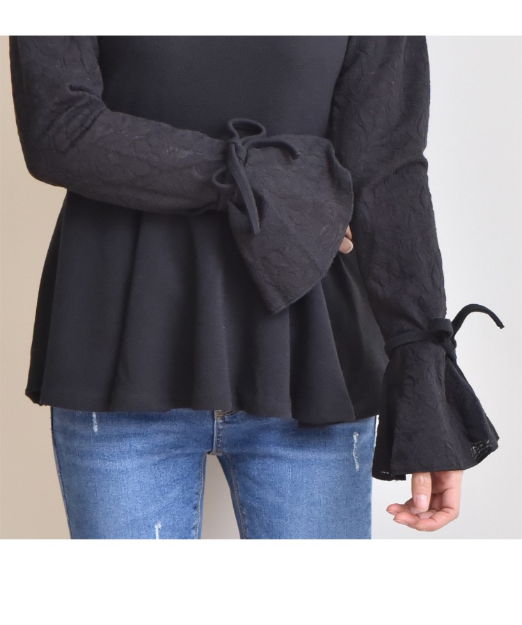 裾口はリボンで結んでさらに女性らしくスタイリングできますよ。