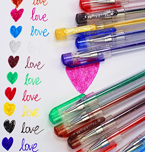-. Feature : Fruit Scent Special Metallic Giltter Gel Ink Pens / Easy and comfortable to write / Great for marking notes, DIY cards or Photo album / Package contains 12 pens of different colors
