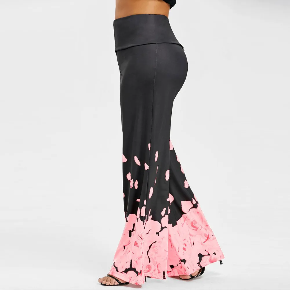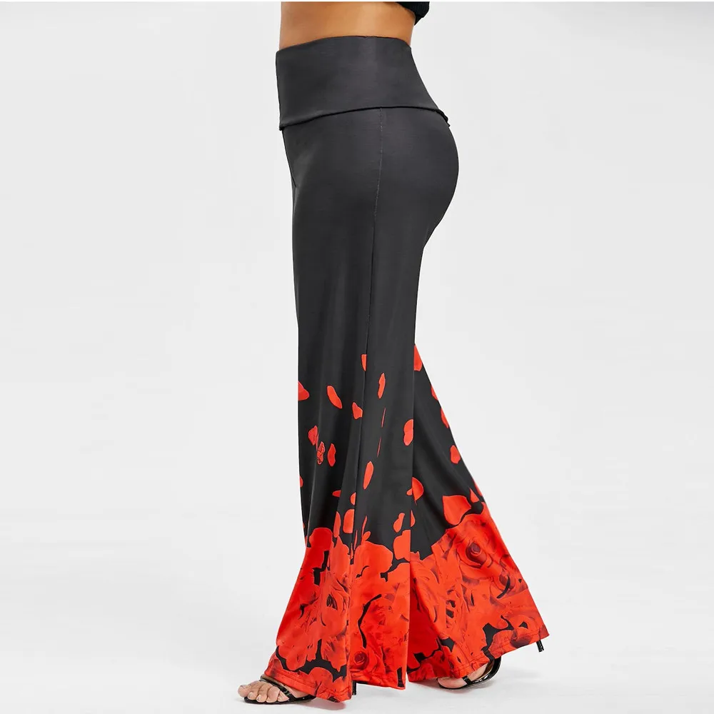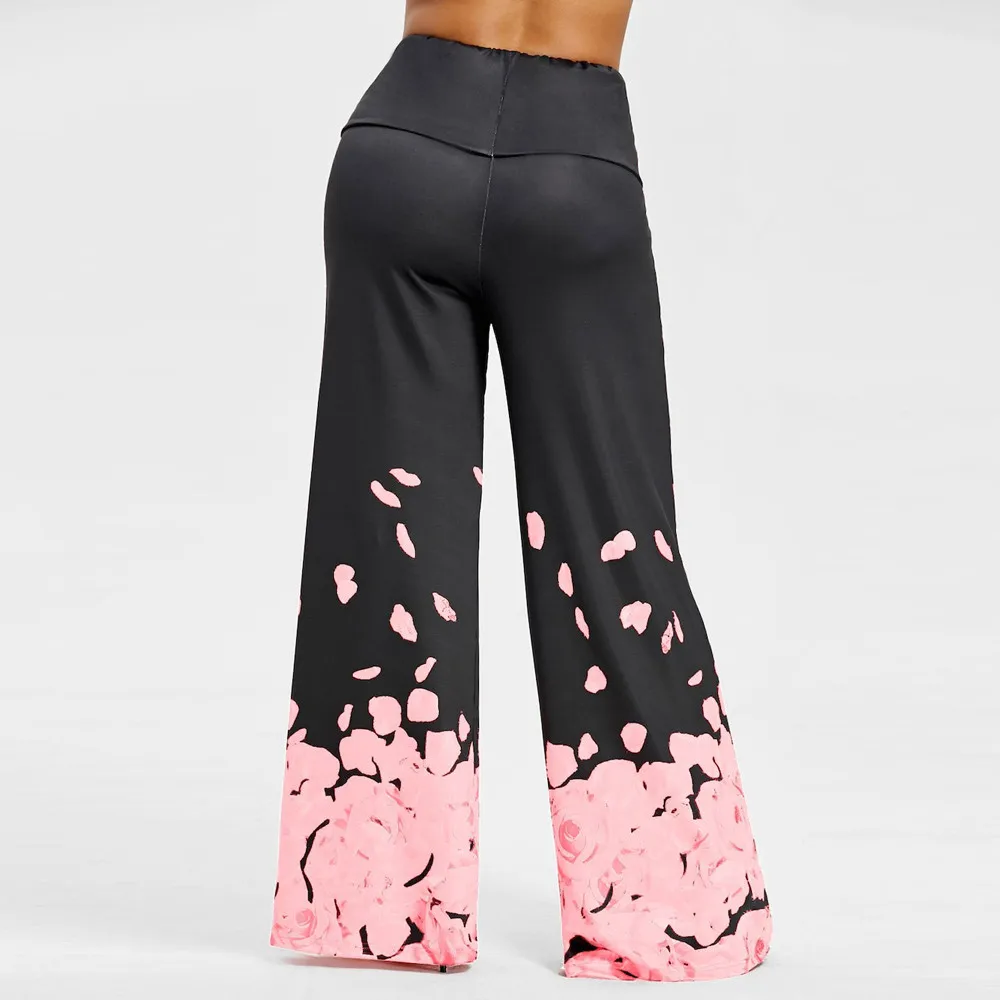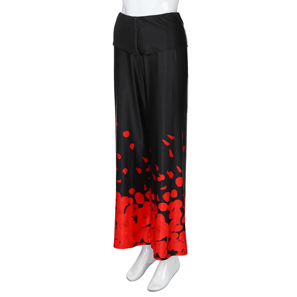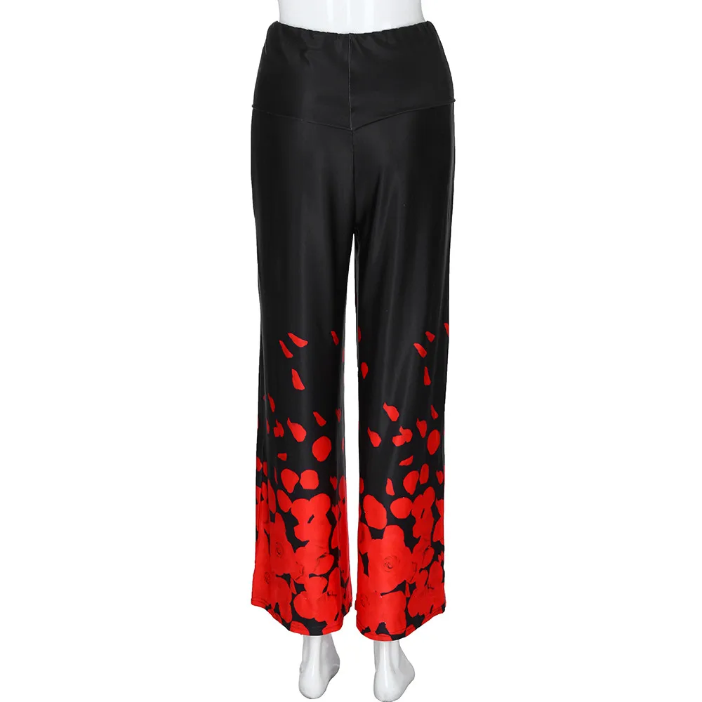 Large size ladies pants:Rose print loose casual trousers wide leg pants
