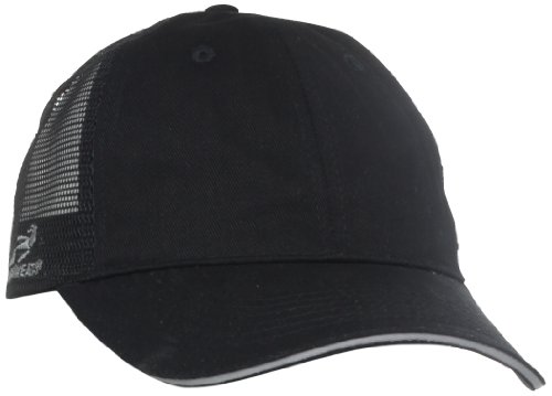 -. Feature : Black undervisor reduces glare / Traditional six-panel baseball trucker cap styling / Mesh back ensures even air flow so you stay cool / Eventure cotton twill sweatband keeps sweat out and your eyes on the prize / Snapback closure fits all head sizes and is ponytail friendly / Black undervisor reduces glare