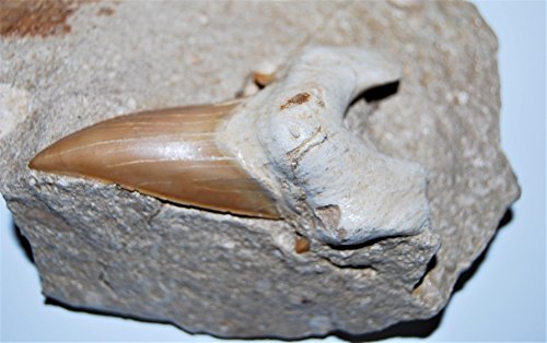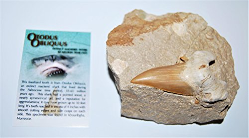 Studio : Fossils, Meteorites, More Publisher : Fossils, Meteorites, More Binding : Toy Product Description This is a neat item - it's a genuine fossil tooth in the matrix from an extinct mackerel shark, Otodus Obliquus, which lived up to 65 Million years ago! The tooth measures 3 inches in length. The entire piece weighs 1 pound 10.4 ounces. Included with the fossil is a nice color information label. Otodus had a pointed snout, nearly symmetrical tail, and a reputation for aggressiveness; it may have grown up to 30 feet long. Its teeth reached in excess of 4 inches with smooth cutting edges and side cusps on each side. CHECK OUT THE OTHER AMAZING FOSSIL TEETH I HAVE AVAILABLE!! 0
