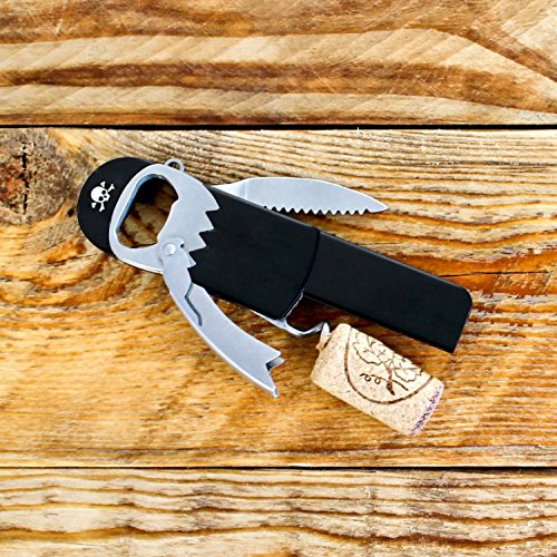 -. Brand : Suck UK -. Feature : Made from Stainless Steel / Corkscrew with easy open lever, foil cutter and beer bottle opener / Matt black finish on the body / Designed to look like a peg-legged pirate / Forget Blackbeard, "Legless" is the hardest working pirate in the bar! -. Label : Suck UK -. Manufacturer : Suck UK -. Model : SK BOPIRATE1 -. ProductGroup : Kitchen -. ProductTypeName : KITCHEN -. Publisher : Suck UK -. Studio : Suck UK -. Title : Suck UK Legless Corkscrew Pirate Bottle Opener