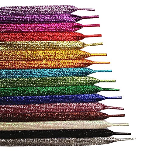 Shiny Gold and Silver thread Sport Sneakers Flat Shoelaces Bootlaces Shoe laces Strings.16 Pairs Flat Shoelaces, Shoe Laces For Kids, Youths Women's Sneakers Shoestrings Shoe Strings