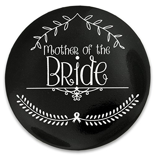 Studio : PinMart Publisher : PinMart Binding : Toy Product Description Our Mother of the Bride Button is 2-1/4" round with a durable and glossy black color front side featuring an elegant scripted "Mother of the Bride" and pretty graphics in white. The back side has a silver metallic backing with a safety pin back for securing the button to your favorite garment. Each is individually poly bagged. A perfect gift for the bride-to-be to give to her Mom on her day of the bachelorette party, rehearsal dinner, wedding ceremony or wedding reception. This also makes a great decorative "bow" or "gift topper" for a personal thank you gift at the Bridal shower! Purchase the matching buttons to make perfect party favors and great conversation pieces. 0