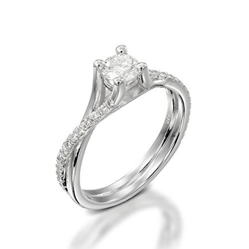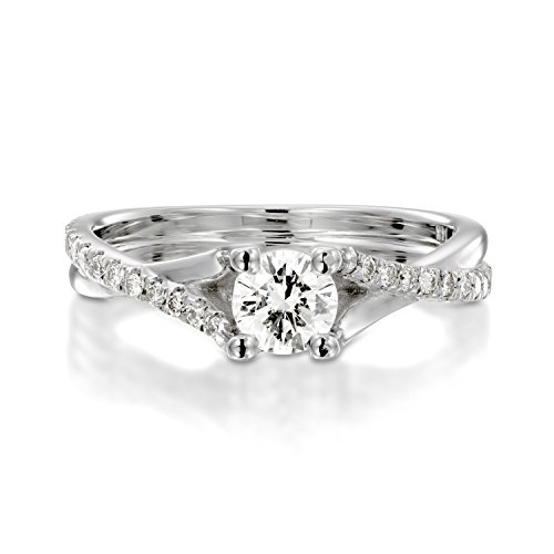 -. Feature : 1.00 Carat Round Cut Center Stone / Crafted in solid 14K White Gold - Color:H-I Clarity:I2-I3 / Real Genuine Diamond - IGI Certified / 14K White Gold Ring Sidestones