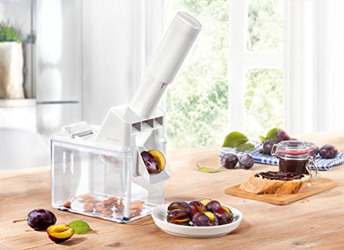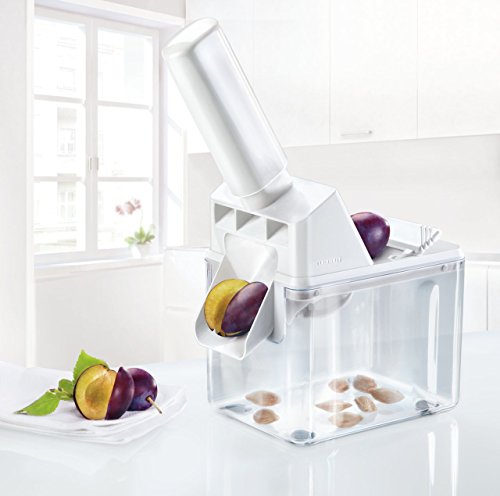 Studio : Leifheit Publisher : Leifheit Binding : Kitchen Product Description Leifheit's Plum Pitter offers the most efficient way to stone plums. The plum pitter rapidly removes pit from plum. A stainless steel plunger separate the plums into stones and fruit pulp. The stone is captured in the container and the fruit pulp into a bowl. Clean with warm water. 3 year warranty. Color: white 0