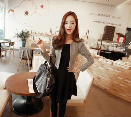 グレーのジャケットとセットで綺麗目コーデに。