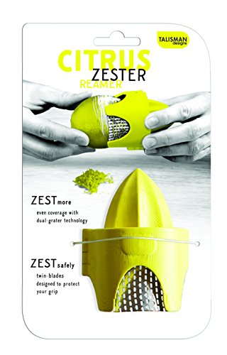 Studio : Talisman Designs Publisher : Talisman Designs Binding : Kitchen Product Description The Citrus Zester and Reamer from Talisman Designs is everything your lemon and limes have been asking for! Get the most out of your citrus by zesting and juicing with this versatile, safe and easy to use tool. The unique design holds fruit in place and protects hands while zesting; open the zester, place fruit inside, close the zester so it is hugging the fruit and twist with confidence to zest. The dual grater technology provides even coverage so you get the maximum zest every time. Once you are finished zesting, slice your fruit in half, place the tool in a dish and ream away to get every last drop of juice out for your salad dressing, lemon curd, savory sauce or cocktail. The handy Citrus Zester Reamer does the work of two tools but is compact and easy to store. It is made from durable BPA-free plastic and stainless steel; easy to care for, just pop it in the dishwasher!. 0