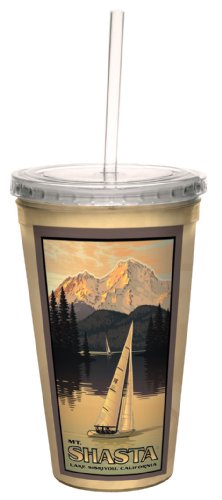 Tree-Free Greetings cc33387 Vintage Mt. Shasta Lake Siskiyou by Paul B. Leighton Artful Traveler Double-Walled Cool Cup with Reusable Straw, 16-Ounce