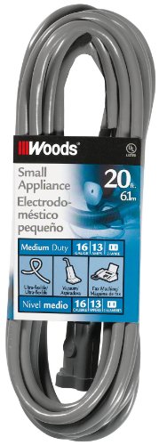 Woods 990547 16/2 SVT Small Appliance Extension Cord, 20-Foot, Gray