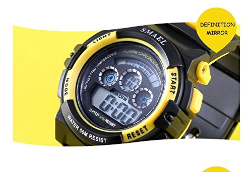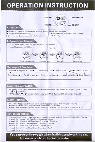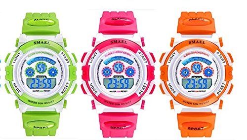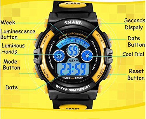 Soft silicone strap and very comfortable to wear Multifunction_ date_ day_ alarm and chronograph LED display_ date_ repeater_ reminder_ alarm_ chronograph_ waterproof_ full calendar_ S-shock resistant_ stopwatch_ back light function Digital display with LED backlight_ easy to read the time_numeric dial_ three hands is dial connected to the signature beautiful color with perfection. 50M water resistance_ suitable for all sports Fashion gift package for children and friends