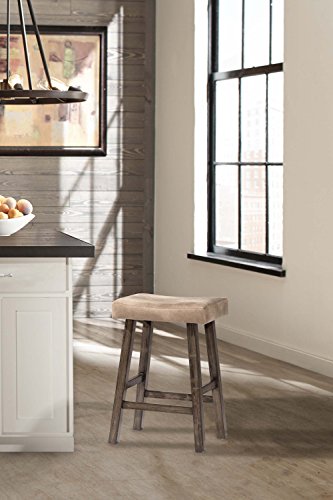 -. Feature : Modern and Functional nonswivel counter stool / A perfect, stylish perch in your office, den, kitchen or bar area / Modern, Rustic-Gray finish on a nonswivel saddle seat / Constructed of durable rubber wood / Recommended weight limit: 250 pounds