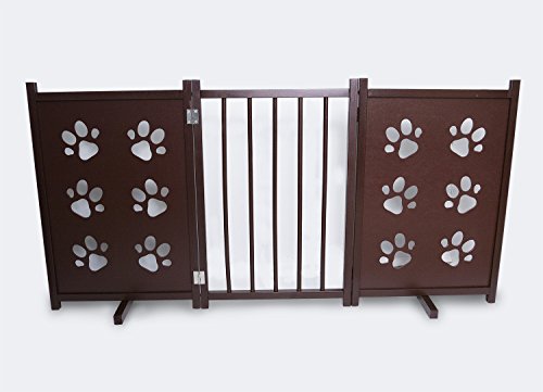 - Title : Furhaven Pet Paw Print Cutout Finish Pet Wood Gate Barrier, Mahogany