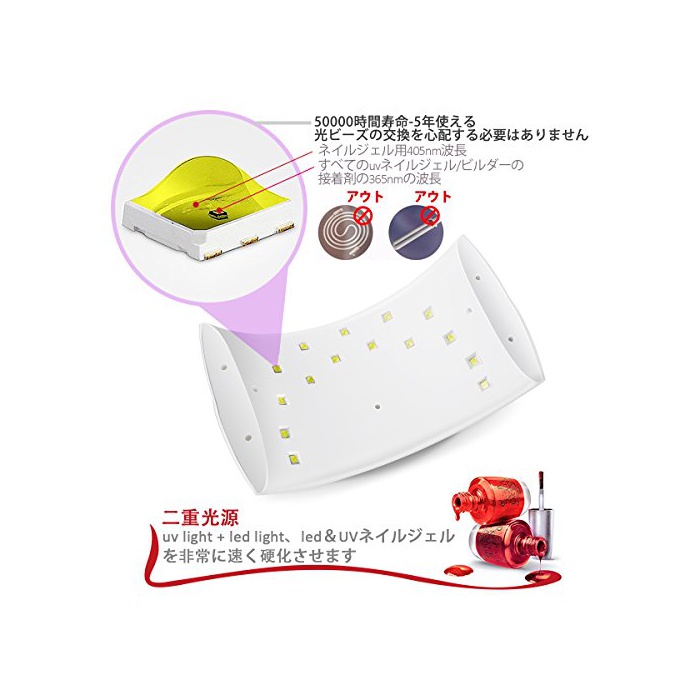 【고안정 장수명】고안정 장수명을 모두 실현 하고, 약50000시간 쓸만한 광원을 탑재하고, 광분량이 안정되어 있으므로 컬러 젤을 경화 시키는 것으로(에) 최적입니다.집에서도 네일 살롱을 간편하게 즐기는 것 를 할 수 있습니다.