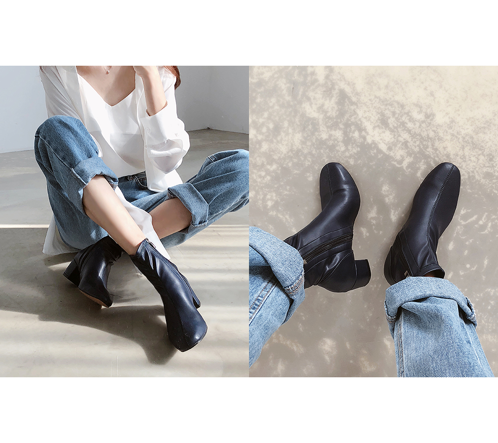スリムなラインのラウンドゥトスパンアンクル・ブーツです。