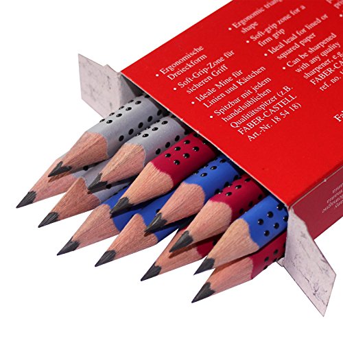Faber Castell Jumbo Grip Graphite Pencils Silver,blue,blackberry- (Mixed Pack of 12)