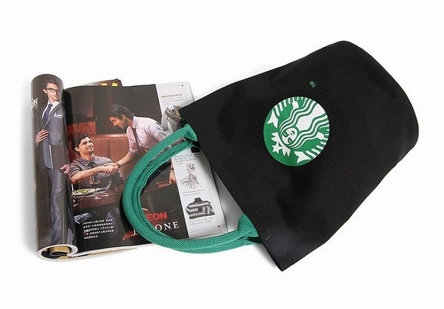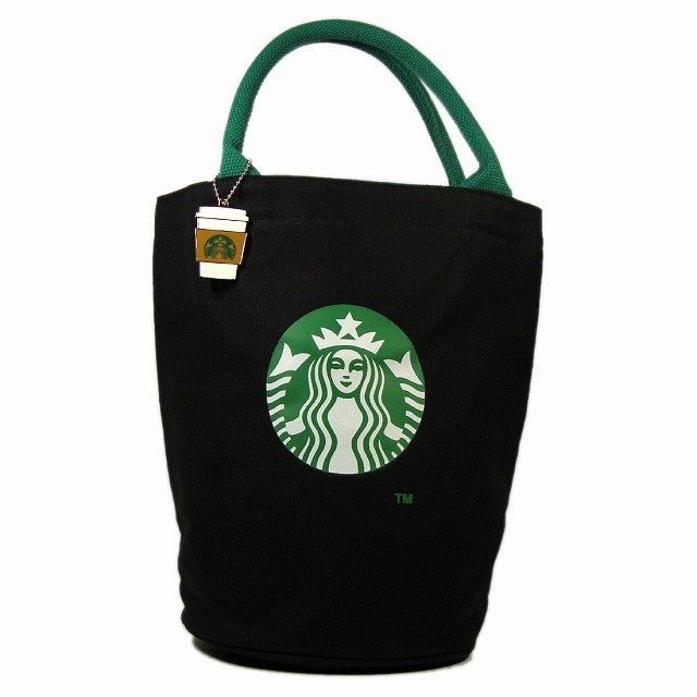 丈夫な作りのバケツ型のトートバッグ。タンブラーのキーホルダーが付いた限定バッグです!
