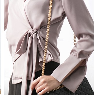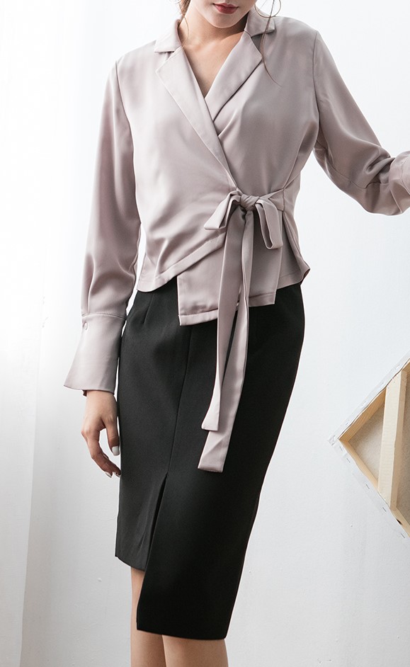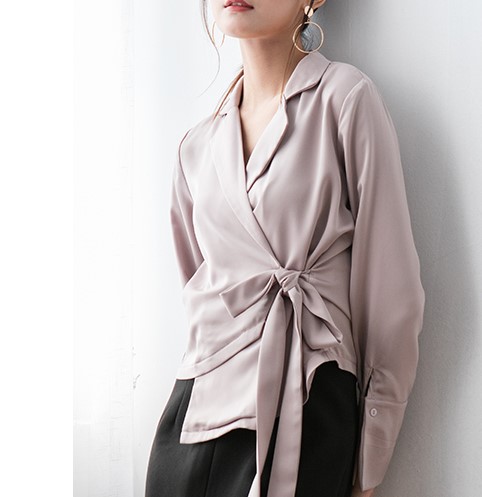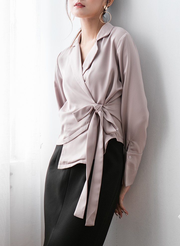 光沢のある質感が大人っぽいきれいめブラウスです。トレンドのウエストコンシャスでスタイルアップ。オフィスコーデとしてもおすすめな一着です。