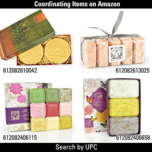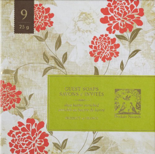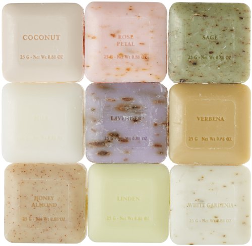 - Feature : Made in France / Quad Milled / Each soap is 25 grams (.88 oz) / Includes 9 different scents: White Gardenia, Honey Almond, Rose, Linden, Verdena, Lavender, Sage, Milk, Coconut / Set of nine 25 gram guest soaps in clean, herb smelling scents - a great way to sample and find your favorite Pre de Provence scent / Makes a great gift, perfect sized soaps for guests during their stays or to add to bathrooms and kitchens / Ideal set for homes or housewarming gifts - place one soap in each bathroom / Soaps are quad milled Shea Butter enriched - pure essential oils added for Aroma / No animal testing - Free of Parabens, Ethyl Alcohol, Phenoxyethanol, DEA