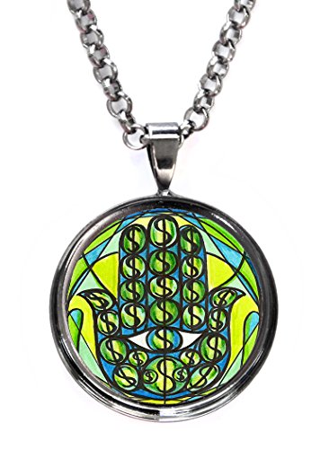 -. Title : Wealth Abundance Money Luck Success Hamsa Gunmetal Pendant with Chain Necklace