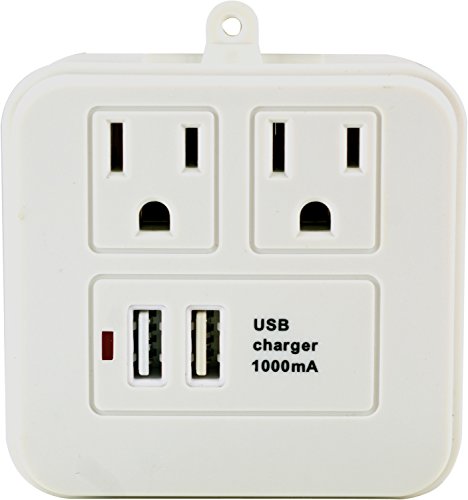 -. Feature : Provides two USB charging ports and two AC outlets / Removable shelf to hold your USB device during charging / Mounts securely to any standard wall outlet / Can be use with our without device shelf / 1.0A/5W charging power