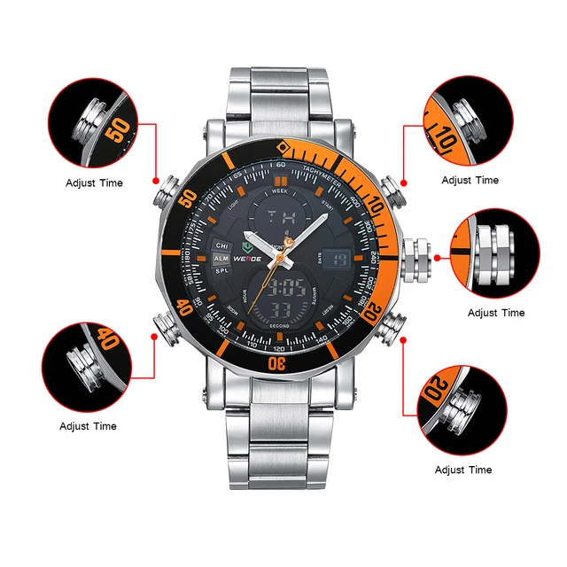 | [해외] 웨이드 석영 스포츠 손목 시계 캐주얼 정품 시계 스테인레스 스틸 디지털 팔찌 21 남성 시계 럭셔리 패션 캐주얼 |